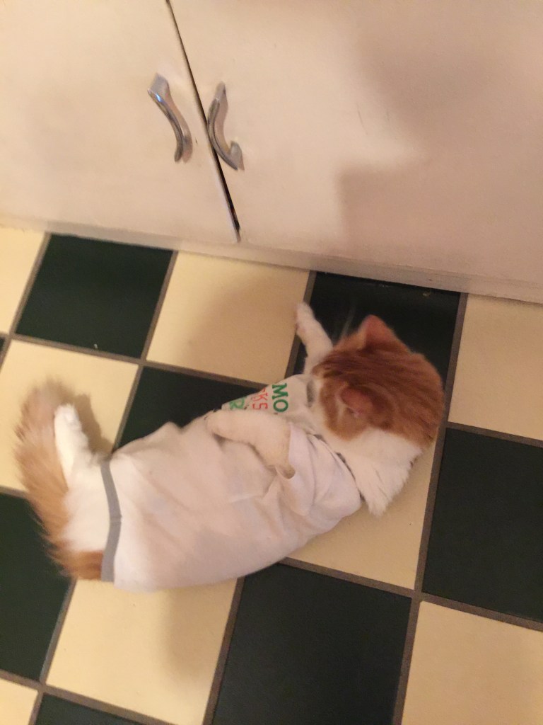The end is here,. Tomorrow ends Lucy’s suffering. For days now, she has steadily declined and the medicine isn’t stopping it. She can no longer go up the stairs or jump on the couch to cuddle with me. Her hair is in tangles because she can’t clean herself. I have cleaned her several times a day with wet baby wipes. The lump has now grown in size. It is making her unable to walk properly. I think her organs are being affected.